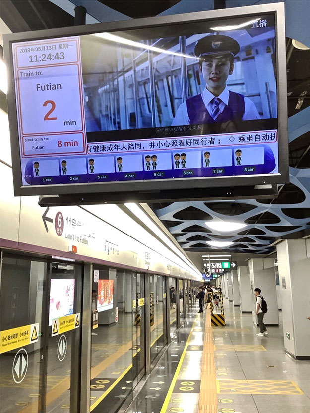 こうした例は深センの地下鉄(MTR)の例だ。筆者は世界中でさまざまな電車に乗ってきたが、深センではじめて見たのが、ディスプレイ下部に表示されている車両ごとの混雑状況である。これは日本でもJR東日本などがアプリベースで提供しているサービスである。しかし、この混雑状況をアプリで提供しても、実際にホームに立ってさあ電車に乗ろうとしたときに、さて次の電車の混雑状況はどうだろうと、わざわざアプリを立ち上げて確認するという行動はどう考えても現実的ではない。