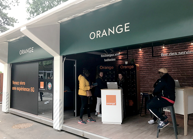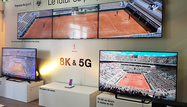 5G配信については、デモルームのみならず、ローラン・ギャロスのメインコートであるフィリップシャトリエ前の出店ブースにテニスグッズや飲食店と並んで、大会オフィシャルスポンサーであるOrange社のブースが出展され、ここにもOppo製5G端末と再生PC(+Spin Digital製ソフトウエアプレーヤー)、80インチのシャープ製8Kモニターの組み合わせで8K映像のデモを一般公開。こちらは関係者に限定されたメディア棟と違い、一般のお客様も自由に視聴できる環境だった。