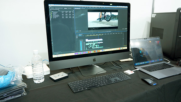 Premiere Proの進化は、留まることをしらない。新機能新発表はなく、やはりNABで発表した機能のデモ展示となった。今や日本のAdobeの顔となった業界では有名なR女史のデモも手慣れたもの。今回は動画トラッキング機能を使った特定の対象物だけを消す「コンテンツに応じた塗りつぶし」機能。今までだと、After Effectsを使ってフレームごとに処理するしかなかったことを自動で消してくれる。