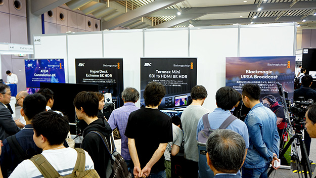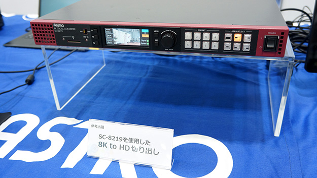 シャープと共同開発の小型ENG系の8Kカメラを代表ブースに設置し、その8K映像から4K・HDをリニアに切り出す展示がメイン。簡単な操作で画質を落とすことなくできるのは、さすがにアストロデザイン製品ということを感じさせた。もしかしてNABでシャープブースに展示してた小型8Kカメラもあるのかと思ったが、民生機扱いの機種で、シャープブースではないので今回は見送りとの事。NABで簡易的に8K映像をEDIUSで出力出来たので、もう少し見たかったのも事実、残念!