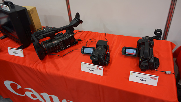Inter BEEでは巨大なブースを持つCanonも今回は小さめ。ブース自体が会場の一番端にあるのでなかなか人通りも少なかったが、展示物として4Kハンドヘルドのデジタルビデオカメラ「XF705」が見学に来ていた学生に受けが良かったようだ。