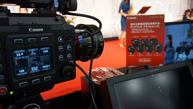 NABで発表したシネマカメラ用単焦点レンズシリーズ「Sumire Prime」はメインブースでの展示。今までのCanonのレンズにはない質感は大阪でも人気だった。せっかくならもう少しバリエーション多く展示してればその良さをもっとアピールできたのでは?と個人的な感想。