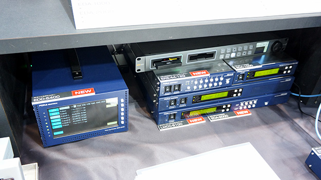 ブロードバンド機材の標準の様な朋栄。今回新製品の発表は特になく、やはりNABでの新機種・新技術の国内初展示となる。注目すべきは映像の遅延を補正する新タイムラグチェッカー「EDD-5400」。映像から音声等の遅延を測定し、その結果を元に遅延をゼロにできるシステムを構築したデモを展示。簡単な操作でそれが視覚的にも良くわかる。とはいえ、筆者の仕事のレンジでは残念ながら使う事がなさそうだ