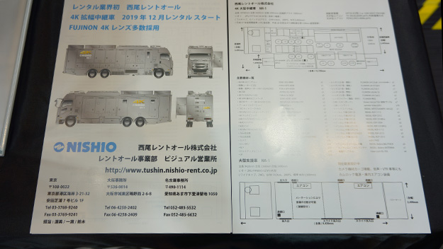 中でもFUJINONレンズをメインとした大型中継車の展示は、流石に出来ないためカタログでの配布・説明になっているがオリンピックを前にこの手の大型4K制作を考えている方は是非参考になるはずだ(NISHIOレントオール)。