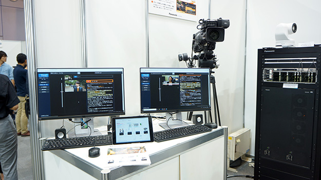展示の一つは音声認識文字起こしサービス「P-VOT」。リアルタイムに音声からテキストに変換し、変換最中でもキーボードから打ち換える事も可能。そのテキストへの変換正確さは筆者が知る限り、ほとんど類を見ない正確さだった。もう一つは、NABで公開されていた8K映像からの自動認識切り出し機能。