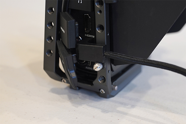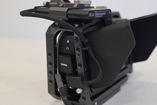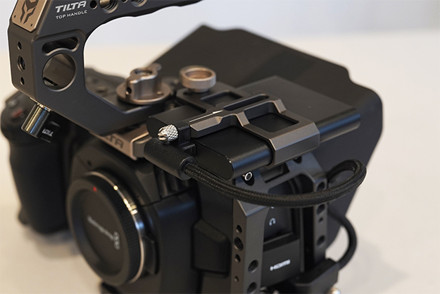 フォーカスハンドルの取り付けはカメラ左側からスライドさせて、ネジで圧着する仕組みになっている。取り付けてみると一体感の素晴らしさを感じるだろう。カメラ左のケーブル類の端子部分をカバーする意味でもこれはよく出来ている。