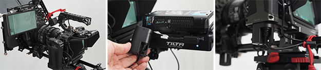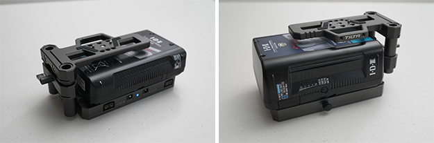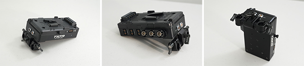 可能であれば外部モニターへの電源供給もしたいところだが、ハンドルからできるのはフォーカスとカメラへの給電だけ。Vバッテリープレートであれば可能なのだが、前述のVバッテリープレートでは15mm LWS Baseplate(TA-BSP-15-G)が装着できない。どうしたものか?それを解決するのが、Tilta Universal Battery Plate(V-Mount)だ。