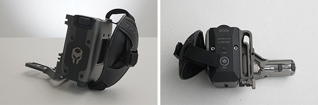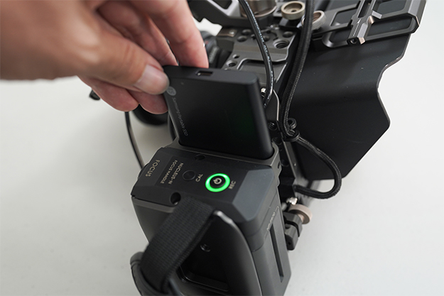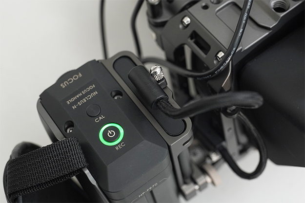 Necleus-N付属のコントローラーではなく、バッテリー搭載型のフォーカスコントロールができるハンドルをケージに接続できるのだ。しかも、12V Micro DCケーブルを使用することでハンドルからカメラヘの給電も可能。LP-E6モデルとNPモデルがある。小型のLP-E6モデルも良いがバッテリーの持ちを考えるとNPモデルをオススメする。