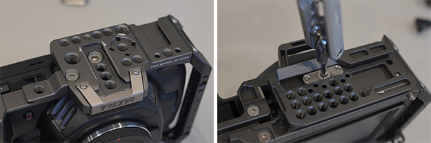 基本形が出来たところでBMPCC 4Kの最大の悩みであるバッテリー問題を解決してみよう。TILTAにはBMPCC 4KのケージにNP/Vバッテリーのプレートを装着することができる。まず、それを紹介する。