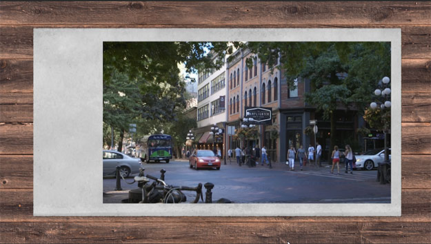 次に[ドロップシャドウ]エフェクトを適用して影を少し加えます。特に数値変更はないですが、背景が木なので、シャドウのカラーをそれに近い色にすると馴染みが良くなります。距離は方向はプレビューを見ながら皆さんのセンスで!
