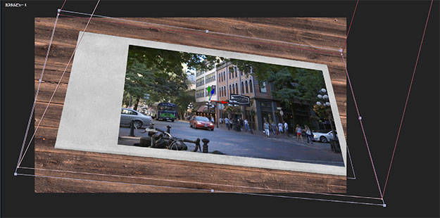 まず背景になる木の素材(wood)を配置して、上にold_peper.pngファイルを設置したら長方形パスでいい感じに長方形マスクを作ります。