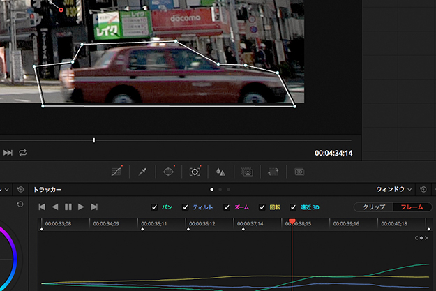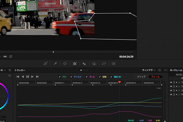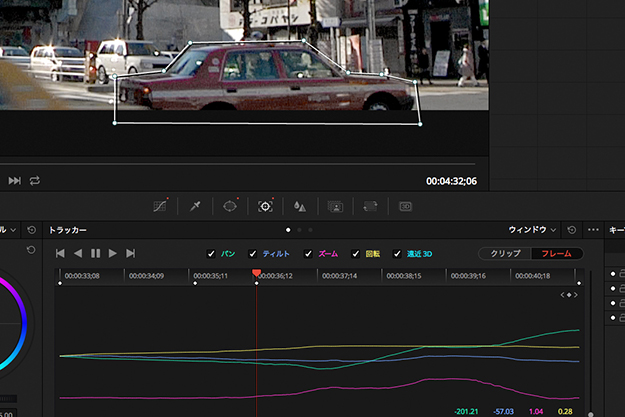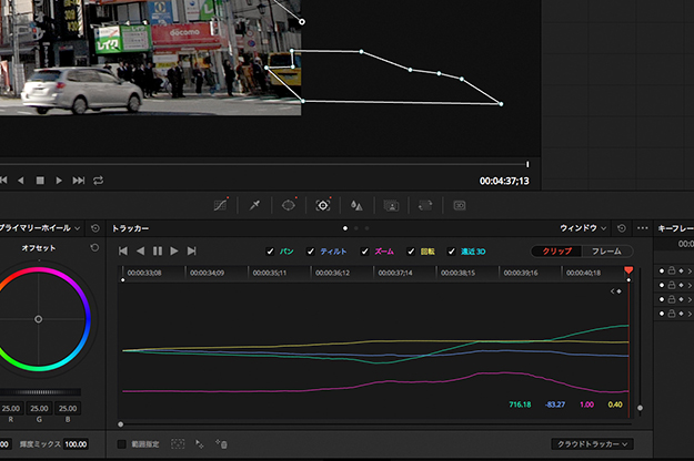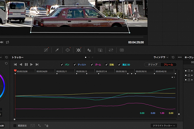 これまでにパン、ティルト、ズーム、回転、さらには遠近3Dにも対応してきたトラッカーだが、実際の作業では、稀にターゲットの動きに追随できない、いわゆるトラッキングが外れてしまう時がある。カメラのパンニングが急だったり、ターゲットとカメラの間を障害物が横切ってしまう場合にはトラッキングが外れてしまうこともあるだろう。