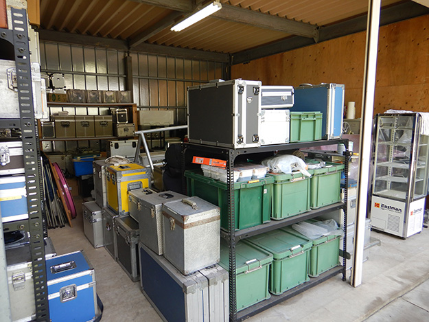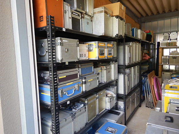 千葉県印西市の友人の倉庫を間借りして、カメラ本体の大部分を置いています。搬入の時は2トン車2台分の量になりました。