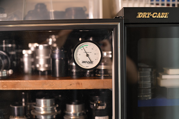 爺も、5台の大型電気防湿庫と何台かの湿度計付きの防湿箱を使っていて、全てのレンズとスチルカメラを入れています。フィルム映画カメラは大き過ぎて、収納しきれません。