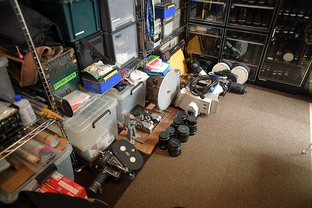 フィルムからデジタルへ切り替えた会社が、不要になったフィルムカメラやその専用レンズ、編集機材を捨て始め、「捨てるならください」と、現在でも引き受け続けているので、やたらに増えてしまいました。