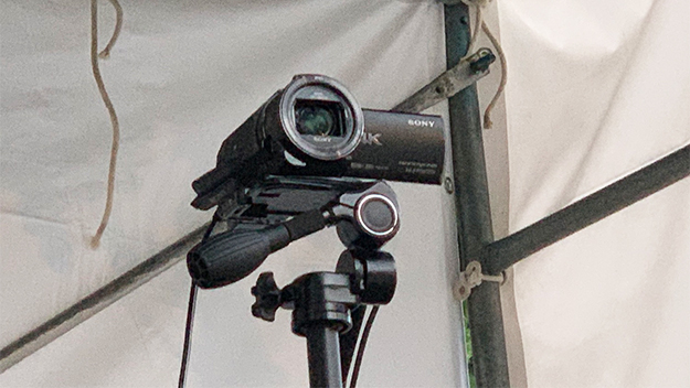 屋外撮影に設置された、ソニーハンディカム「FDR-AXP35」