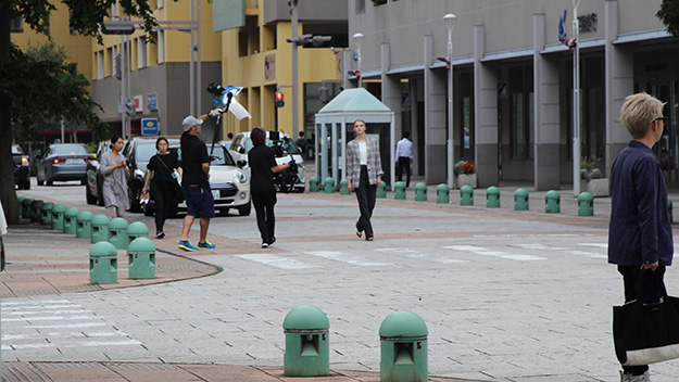 幕張ベイタウンの撮影現場より。メインカットのカメラは手持ち撮影で行われている