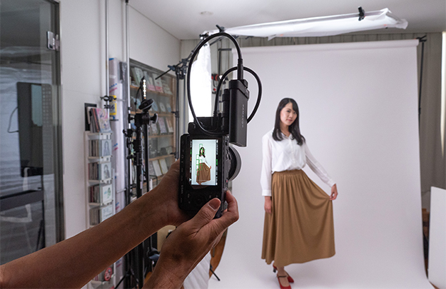 さて、最初はSTILLモードで1枚1枚声を出しながら撮影していたが、撮影前に演出家から「プロフィール写真の他に、少し遊びのあるポーズや動きのあるものも欲しい」という注文が入っていた。そこで今度はSTILLモードからCINEモードに切り替えて、劇団員に何パターンか体に動きをつけてもらってCinemaDNG、つまりRAWでの動画撮影に挑んだ。これは撮影直前に思いついたアイデアだった。