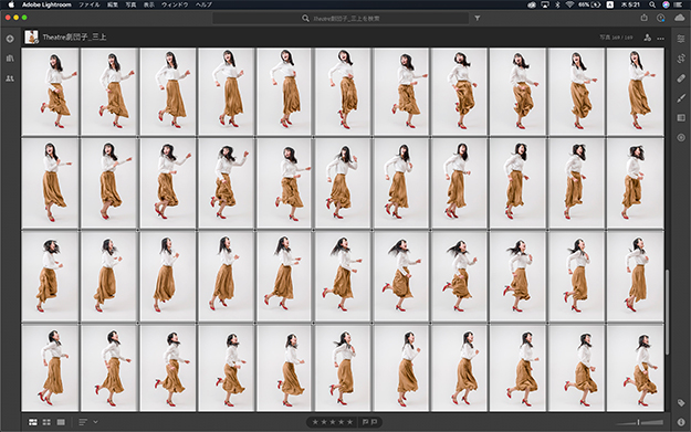 Lightroomで一覧表示、一気に現像、JPEGに書き出す事が出来る