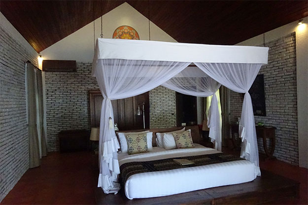 宿泊させていただいたホテルは、ビーチリゾート。ロケスタッフ一人一人にコテージが割り当てられ、広い部屋を独り占め。天蓋付きのベッドで贅沢に数日を過ごさせてもらった。