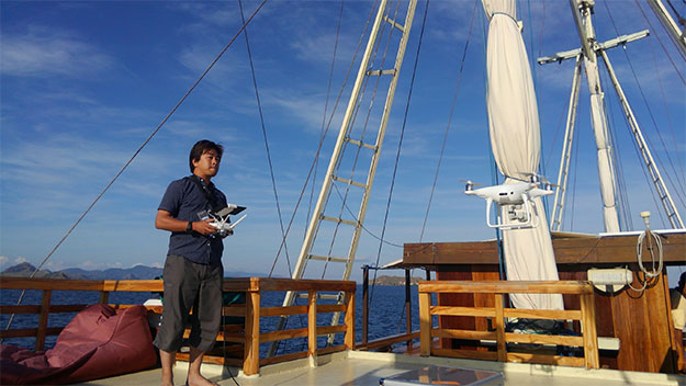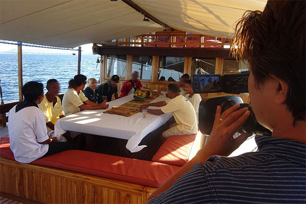 フローレス島、リゾートホテルの他には、クルーザーに乗って周辺の島や海へのツアー取材。実際にクルージングを行っている帆船を一隻借り切っての一泊二日の洋上ロケも行った。