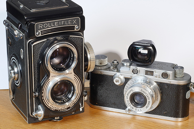 写真3:ローライフレックスT(左)、ライカIIIA(右)。どちらもオリジナルからほとんど変わっていない
