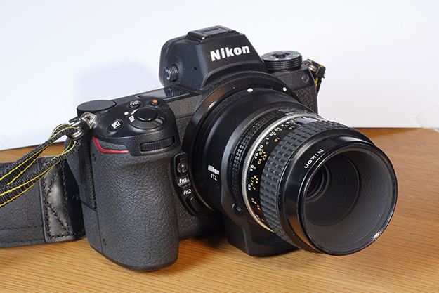 写真15:ニコンの最新型Z 6。ニコンはアダプターを自社製造しているため、機能の制限はあるものの、旧型のマニュアルから最新のレンズまで切れ目なく使えるが、ボディは3年維持できるだろうか