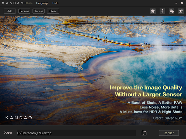 KANDAOのRAW画像編集ソフト「RAW+」。同社のQooCamやObsidianのみならず、他社製の多くの一眼レフカメラで撮影されたRAWデータにも対応する。