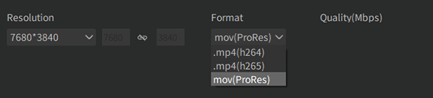 動画を書き出せるフォーマットは、mp4(h264)、mp4(h265)、mov(ProRes)となっている