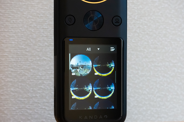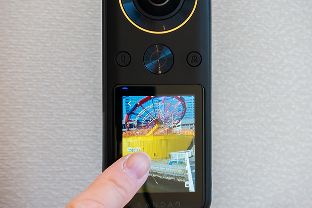インターフェースは、2.4インチのタッチスクリーンを採用。スマホなどデバイスに接続しなくても、カメラ単体で設定や操作、プレビューを行うことができる。スワイプすることで、プレビュー中に上下左右の360°の方向を表示可能。パネルの解像度は320×240となっている。タッチスクリーンはPie Softwear(現Lab pano)の「Pilot Era」というVRカメラでいち早く実装されたが、最近ではGoPro MaxやInsta360 ONE Rなどにも見られるように、コンシューマー用VRカメラのトレンドのインターフェースとなっている。