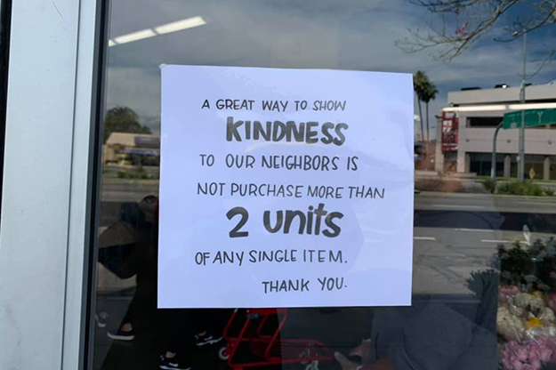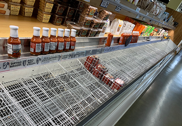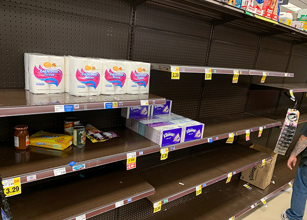 3月13日にトランプ大統領が国家非常事態を宣言した影響もあり、その週末には多くの人々がスーパーマーケットに“買い溜め”に走り、インスタント食品、冷凍食品、ミネラルウォーター、マスク、そしてトイレットペーパーが一時品薄となった。これを見て在米の日本人は「アメリカでも、トイレットペーパーか!」と驚いていた。