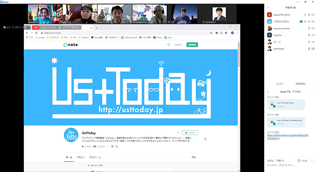 もともと、普段からコミュニケーションツール「LINE」のビデオ通話機能を使い、ゲスト(1人)をリモートでお招きして、スタジオにいる演者の数人がインタビューする…ということも、これまで私たちの10年(約520回)ほどの配信の歴史には何回も実績があります。