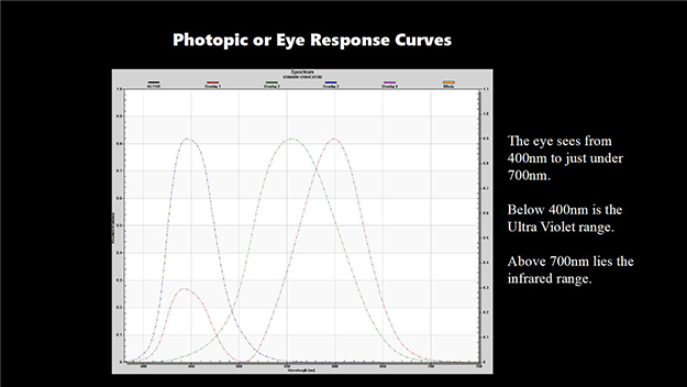 この3種類のグラフはLEDライトの一例だが、同じLEDといえどもその光の出し方によって赤が飛び出していたり、強かったり等々その辺の結果が面白い。この辺も照明部の人ならもっと詳しくわかると思うので興味のある方は調べて欲しい。