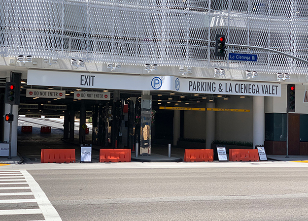 一時休止中のビバリーセンター。パーキングのエントランスはブロックされている(2020年4月筆者撮影)