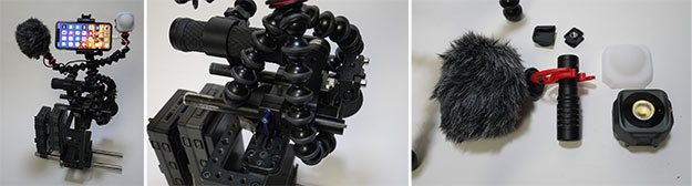 どんなところでもGorillaPodの3本脚が絡める場所なら設置可能。マイクとLEDも同梱されている