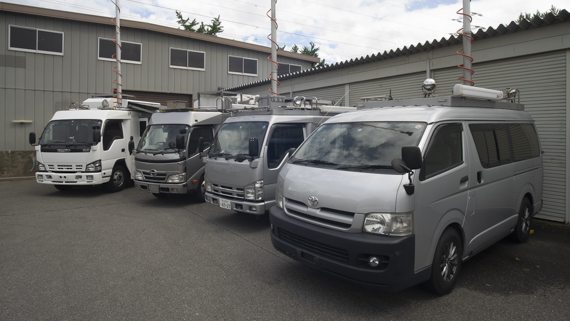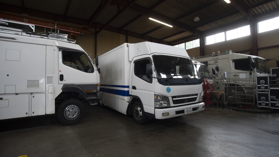 すべての中継車はシャッター付きの車庫で大事に保管されている