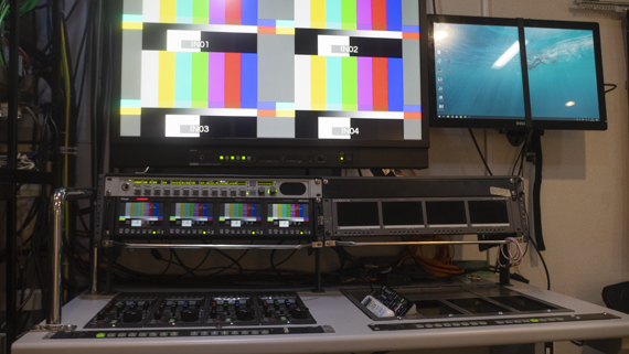 スイッチャーは、朋栄のHANABIシリーズ「HVS-2000」に2SIオプション、コンパクトパネル「HVS-392ROU」で4K10入力に対応。ソニーのスイッチャーではここに収まりきらないシステム規模になってしまうことから、朋栄を選んだという