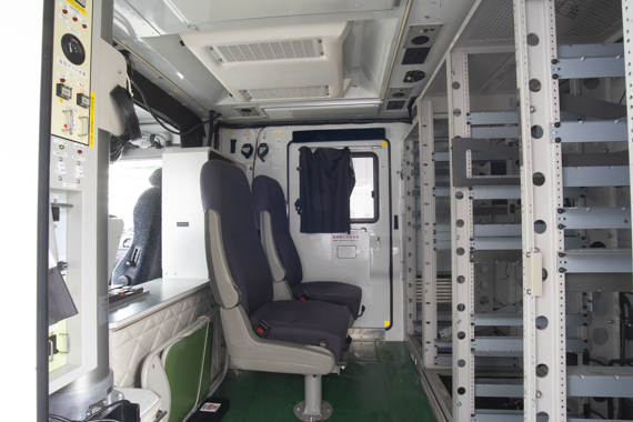 逆に普通の車の中に、発電機とエアコンが付いている。それらが、ワンパッケージになっている。あとは自由に使えますよ。という箱があると思っていただければ導入してもらいやすくなるかなと思いますね。例えば、ラックは取っ払って、ソファーやプロジェクターをセットしたり、お客様をそこに誘って試写会をしたりすることも可能です。海辺にいって編集をして、夜中でもどこでも行けるとか。そういうことにするために、中継車というガワを選んでくださる方もいらっしゃいますね。