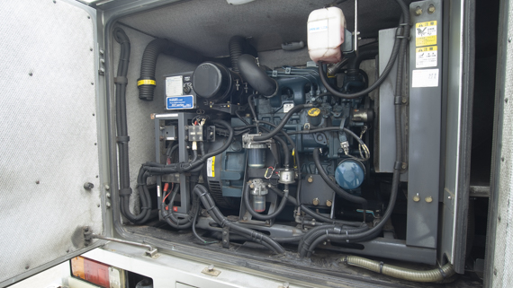 ディーゼルの発電機。軽油を使うディーゼルエンジン搭載で、走行用ディーゼルエンジンと燃料タンクを共有させることが可能