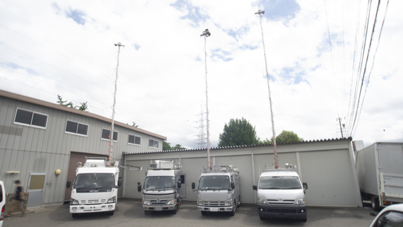 伸びるアンテナのポールがついてる車。上にカメラを載せたりとか、いろいろな用途に活用できる