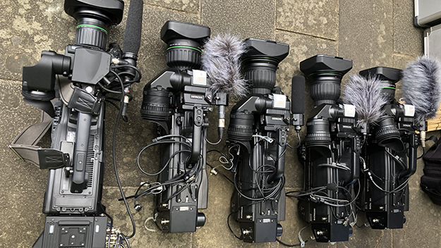 4Kレンズを擁した日立の放送用4Kカメラが4台、JVCのコンパクト4Kカメラ2式、ソニーの業務用HDシステムカメラHXC-D70が3式、その他数式のシステムカメラを揃えています。田舎の数人でやっている会社の割になかなか見られない量の機材を揃えていると思います。
