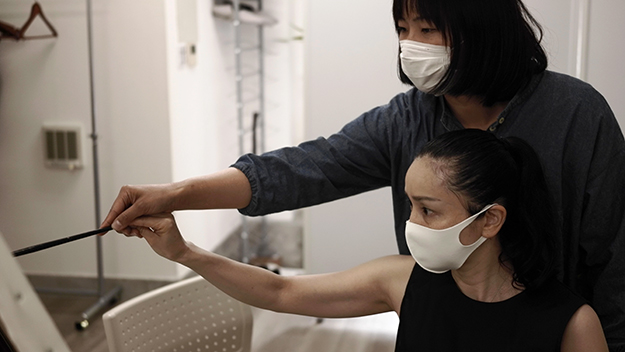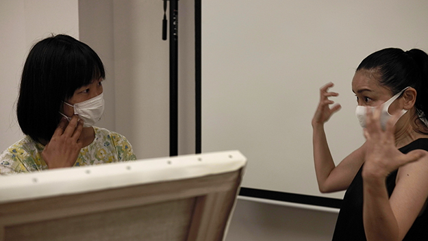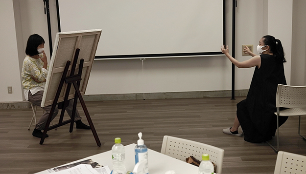 短編映画「アトリエ」の稽古。女優:丸 純子 画家:山内絵里