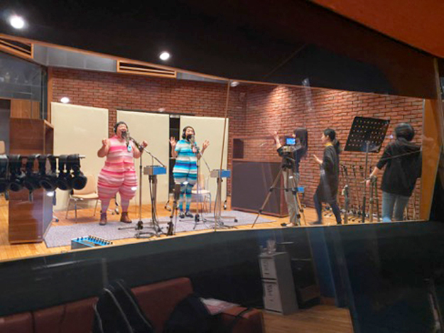 ケロポンズのお二人も、スタッフの皆さんも遊んでいるような雰囲気で笑いながらあっという間に曲ができあがる。ザ・プロフェッショナル!