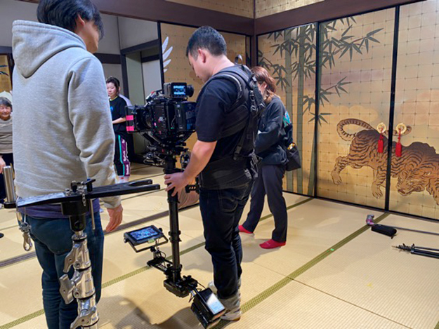 現場はステディカム一台のガチンコ勝負。カメラマンの吉田好伸さん、滝澤智志さんも役者の動きを見ながら何度もリハーサルにのぞむ