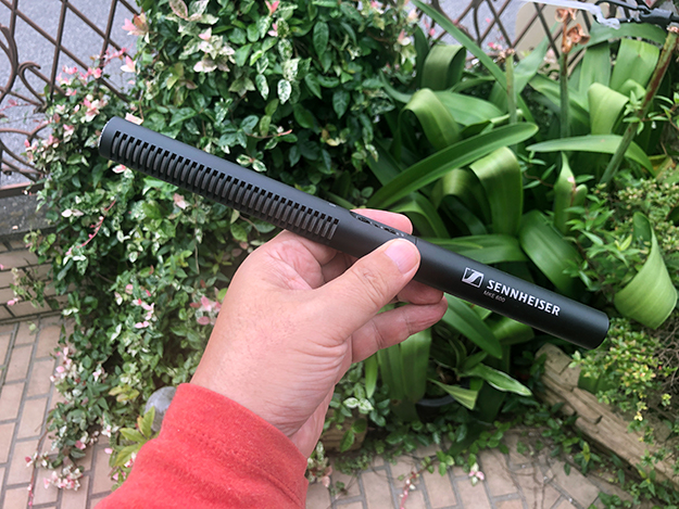 実際の収録では、マイクを近付けるためにいくつかの方法を用いる。1つはマイクブームを使ってマイクをギリギリまで近付ける方法だ。ただし、これはカメラマン以外に音声マンが必要になるので、ワンマンオペレートの撮影では無理だろう。