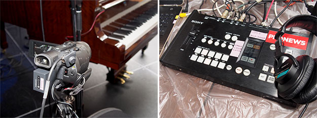 今回のポイントは限られた予算と時間で最大限のクオリティを出すこと。相手がビッグネームのアーティストというのは関係なく、無人カメラやアクションカメラ系で誤魔化す気は山本氏も筆者ももちろんない。ピアノ固定のでさえコントロールが効くPXW-X70を採用している。
