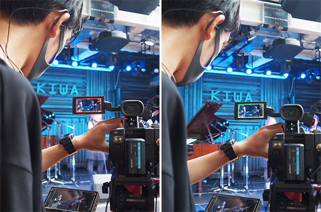 今回上手とセンターをメインで使うため、レンズ周りの操作性に長けたPXW-Z280を採用。この判断に間違いはなくセンターカメラマンは常に上手下手のリターンを見てサイズ調整をしてくる。そしてセンターカメラが際どいワークをしている時は必ず上手がそのフォローにまわっている。これだけでもスイッチャーは楽に叩けるはず。今回、技打ちも台本もない中スイッチミスは皆無だったのはTDの技量もあるが、各々のカメラマンの進んで拾いに行く姿勢が良い方向になっている。昨年放送芸術学院専門学校の取材に行った時に山本氏が教えているそのものだった。卒業してもなおその技術が活かされるのは素晴らしいことだ。