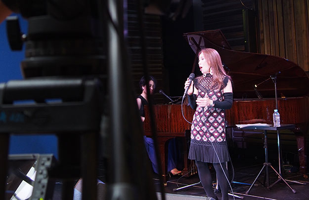 オンラインライブを行う場所は小規模なライブハウスで、舞台にはピアノ演奏者とご本人の二人のみ(のちにギターリストが一人参加)。えっ、レジェンドな方がそんな小さなライブを?!と驚いたが、会場の大きさは全く問題ではなく歌を通じてメッセージをとにかく伝えたい、ずーっと我慢してきたがやはりどうしても歌いたいという本人の意向を汲み急遽プロジェクトが発足したという。