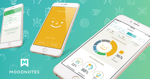 Moodnotesは、気分の浮き沈みを記録する事で自分の思考プロセスを理解し、精神状態を安定させる効果のあるメンタルヒーリングアプリ。認知行動療法に基づいて、臨床医や心理学者と共に開発されています。