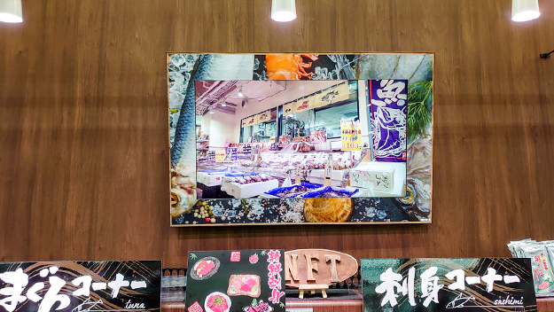 ディスプレイのベゼル部分は売り場の商材に合わせたもので装飾されている。これによってさらにコンテンツがはっきり目に入ってくる